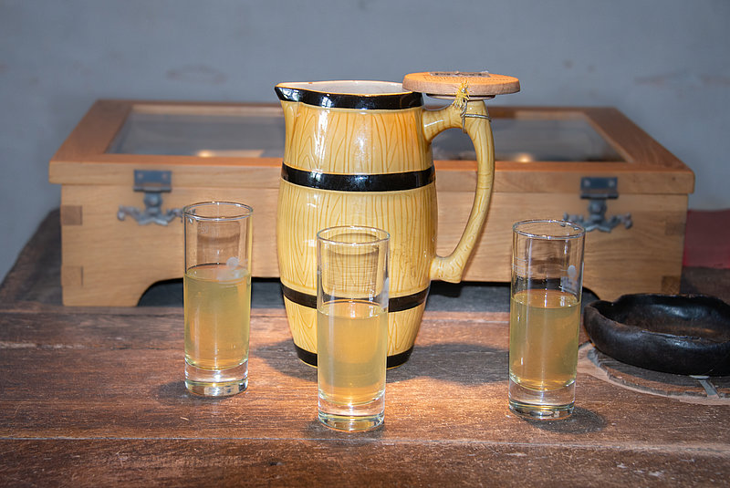 Most aus dem Museum wird in der Mühle aus Unterschlauersbach im Fränkischen Freiland-museum ausgeschenkt. Foto Margarete Meggle-Freund